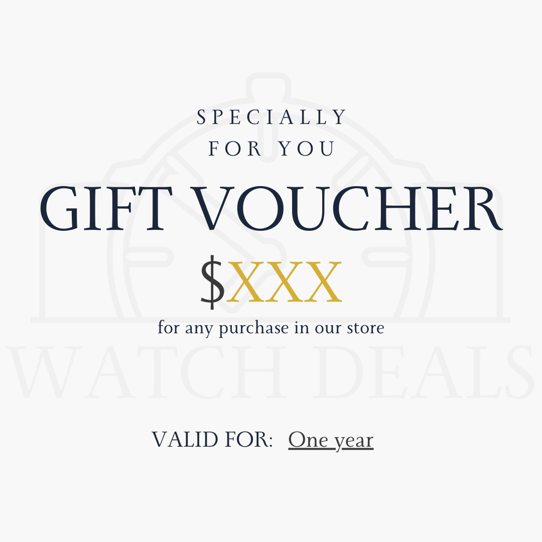 Our Gift Card is a premium way to give choice with confidence. Each card is available in 50,00€ 100,00€ 250,00€ and 500,00€ values and can be sent directly to the recipient as a personalised gift. The card is delivered by email and is valid for one year. It can be redeemed on any online purchase across our full collection of premium watches. There are no surcharges, no hidden conditions and the remaining balance stays available until fully used. It is an elegant solution when you want to give a timeless piece while allowing the recipient to select the watch that suits them best.