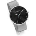 The Jacob Jensen Strata 278 men's watch pairs a sleek 41 mm stainless steel case with a matching metal bracelet, powered by a precise Ronda movement and protected by mineral crystal; water-resistant to 3 ATM (splash resistant — not suitable for showering or swimming).