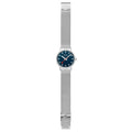 An elegant take on the iconic Mondaine station clock, this Swiss‑made timepiece features a 36 mm round matt stainless steel case with straight sides and a refined Milanese mesh strap, protected by mineral glass and water resistant to 3 ATM—see the specifications tab for full details.