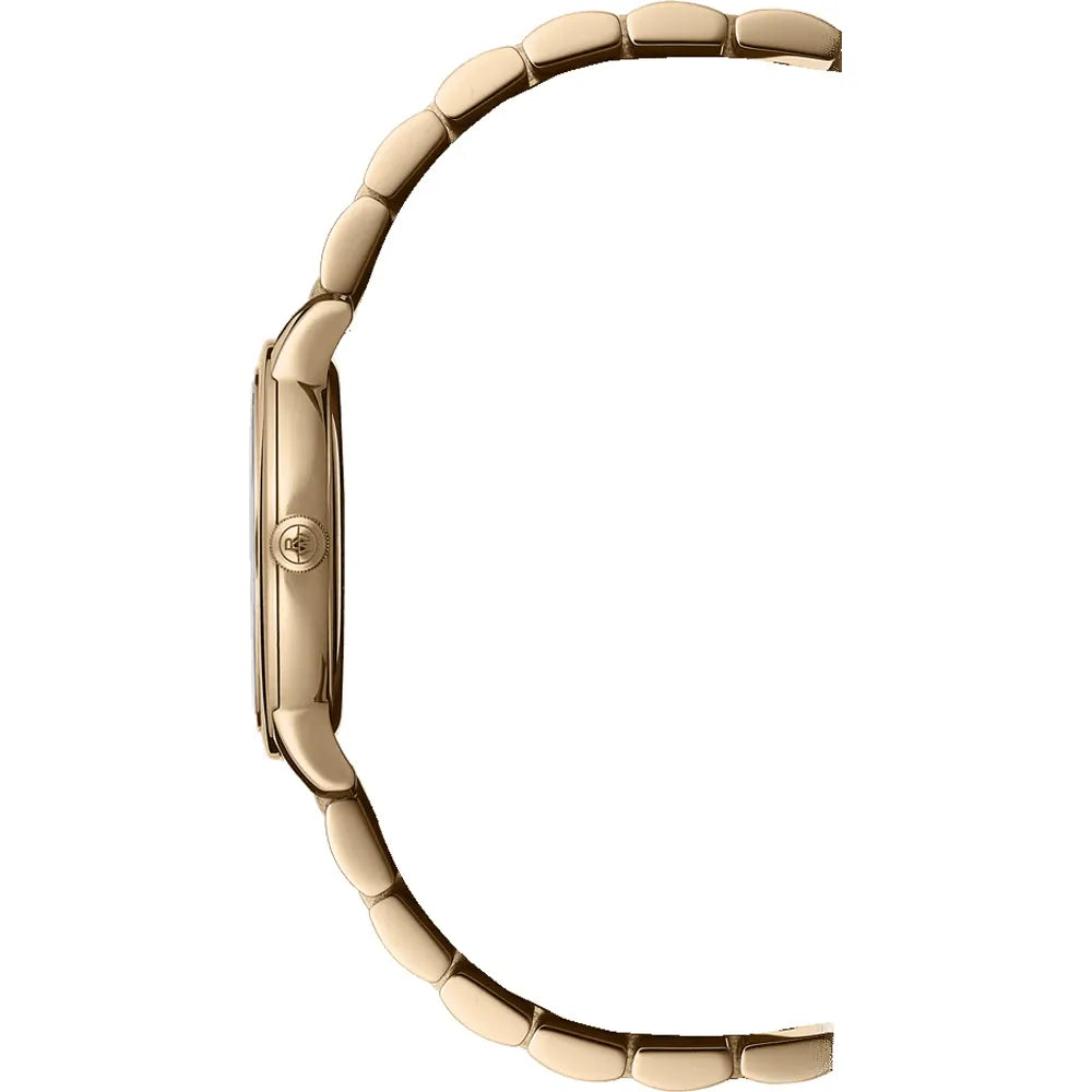 Refined and reliable, the Raymond Weil Toccata 5985‑P5‑00859 Swiss Made ladies' watch (29mm) pairs a gold‑coloured stainless steel case with a sleek black dial, Swiss quartz movement and 50‑metre water resistance, offering compact Swiss precision and timeless elegance for both everyday wear and formal occasions.
