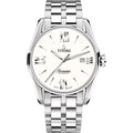 The TITONI Mechanical Watch is a refined Swiss automatic timepiece combining a 40mm stainless steel case and integrated grey bracelet with a crisp white dial, self-winding movement and scratch‑resistant sapphire crystal — water resistant to 5 ATM and secured with a reliable pressure clasp. Its clean, monochromatic design and enduring mechanical precision make it an elegant, versatile choice for both professional and casual wear.